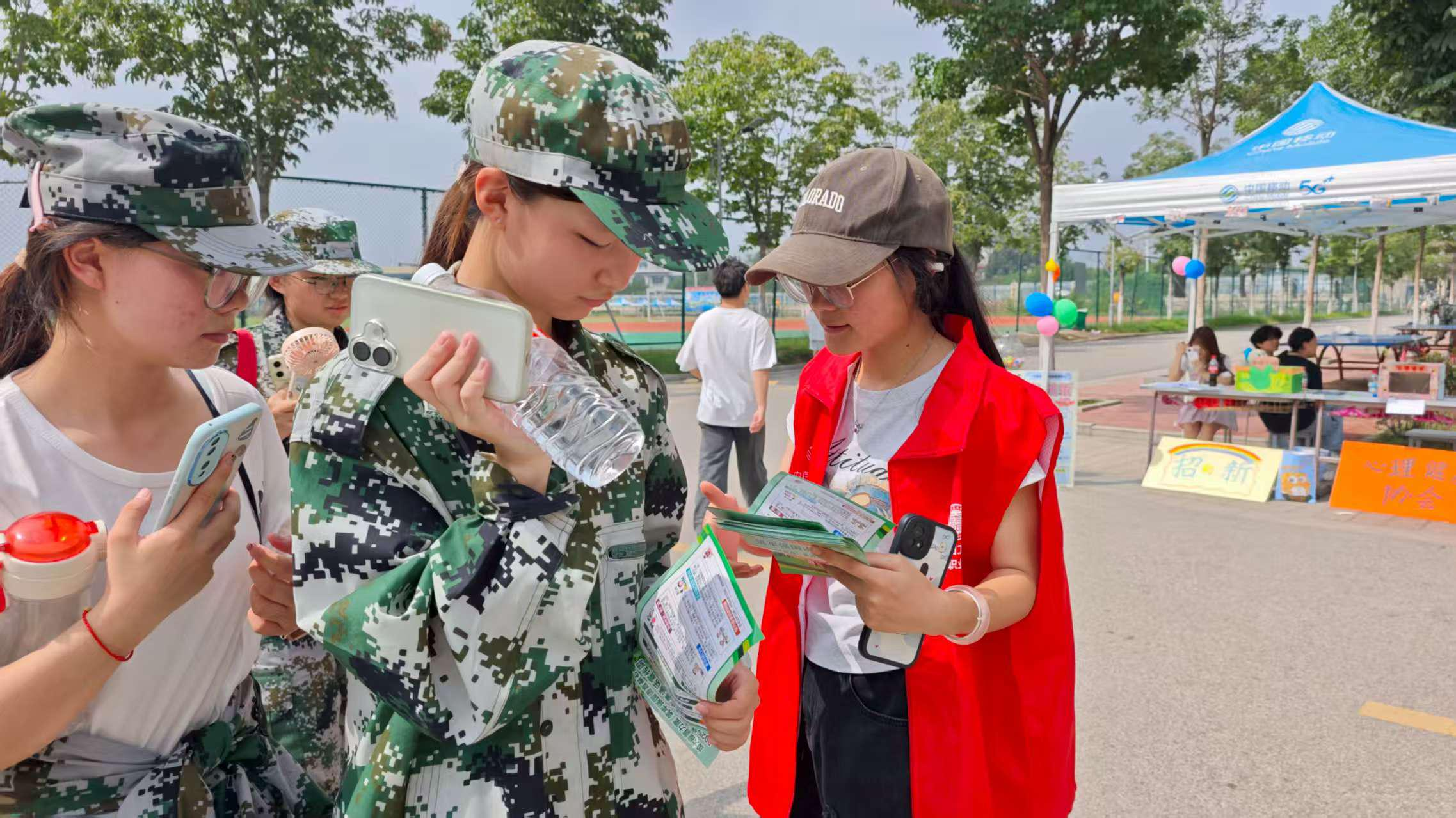 志愿者们来到操场,与正在休息和活动的同学们进行轻松交流。他们通过一些简短的对话和互动,了解同学们在普通话使用中遇到的困惑,并给予了热情的鼓励和简单的指导,倡导同学们在休闲时也积极推广普通话,成为规范语言的传播者。