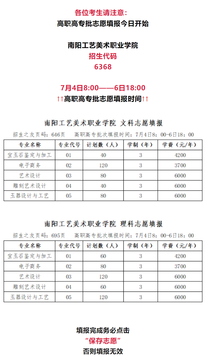 今日开报丨南阳工艺美术职业学院高职高专批志愿填报注意事项