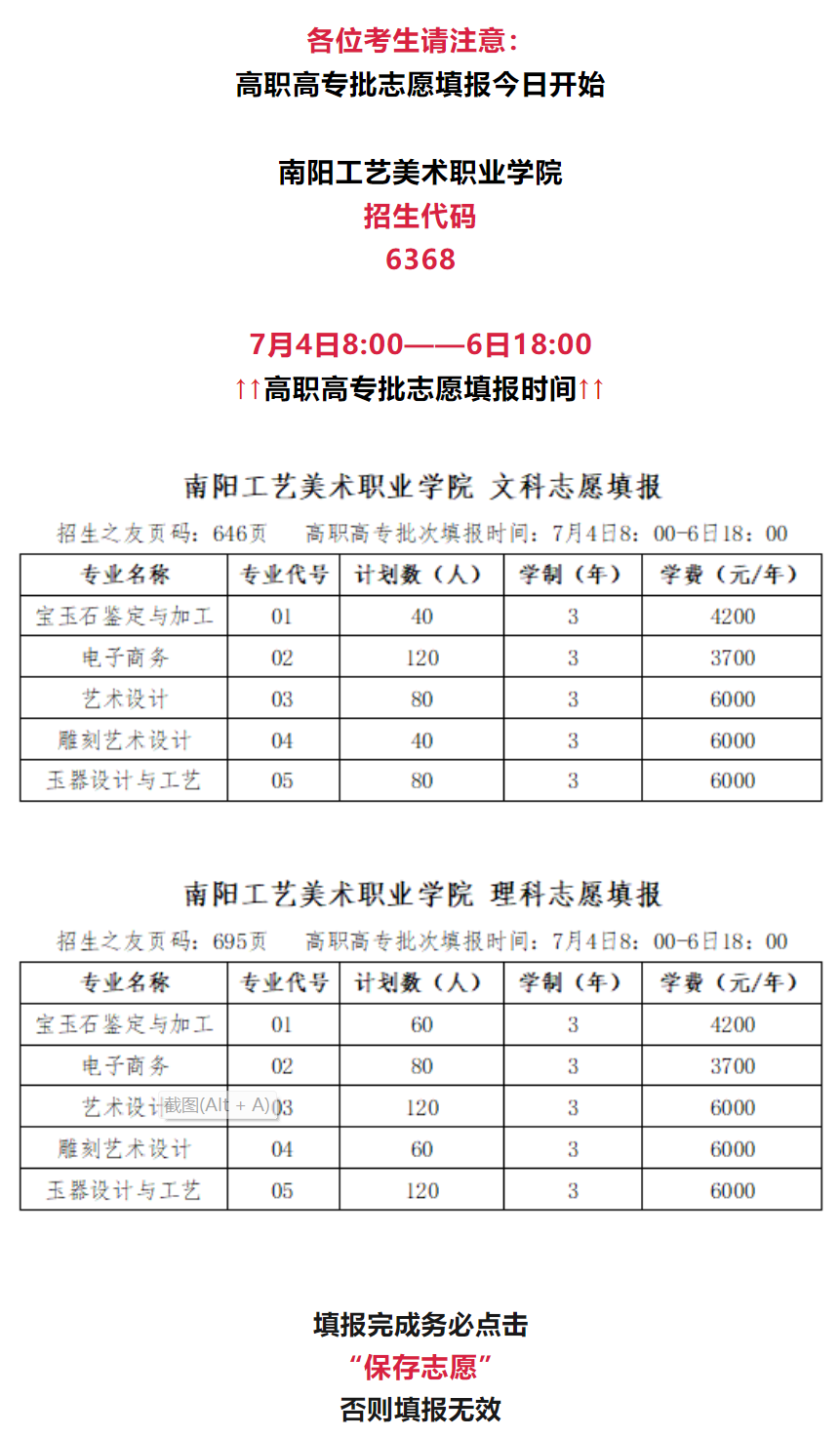 南阳工艺美术职业学院高职高专批志愿填报注意事项