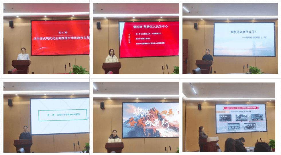 本次集体备课会聚焦“提升思政课课堂教学质量”的主题,马克思主义学院刘文慧、胡杨、苏超男、安梦园、冀佳音、杨春柳六位老师分别进行了讲课展示,同时围绕课程目标、内容结构、教学重点、教学设计及学生常见问题等方面展开深入交流与研讨。各教研室教师结合自身教学实践,积极分享了教学过程中的心得体会及遇到的问题,现场研讨氛围热烈,交流充分。
