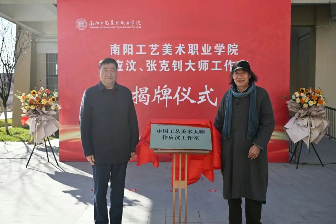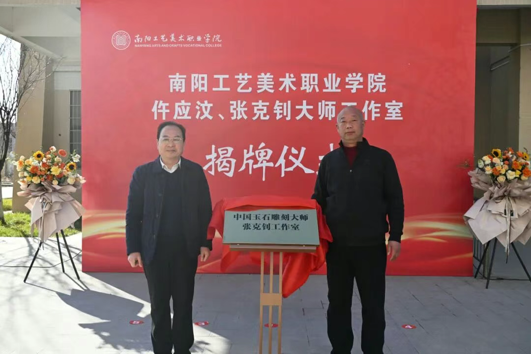 1月8日上午,“仵应汶大师工作室”“张克钊大师工作室”揭牌仪式在南阳工艺美术职业学院珠宝玉雕学院楼下举行。中国工艺美术大师、中国玉石雕刻大师仵应汶,中国玉石雕刻大师张克钊,南阳工艺美术职业学院校长胡楠,副校长李艳丹,县人民政府副县长白兆文,县玉石产业管理委员会主任宋哲等政府部门领导、大师出席。学校相关职能部门、二级学院分管负责人及教师代表参加活动。仪式由珠宝玉雕学院院长陈安定主持。