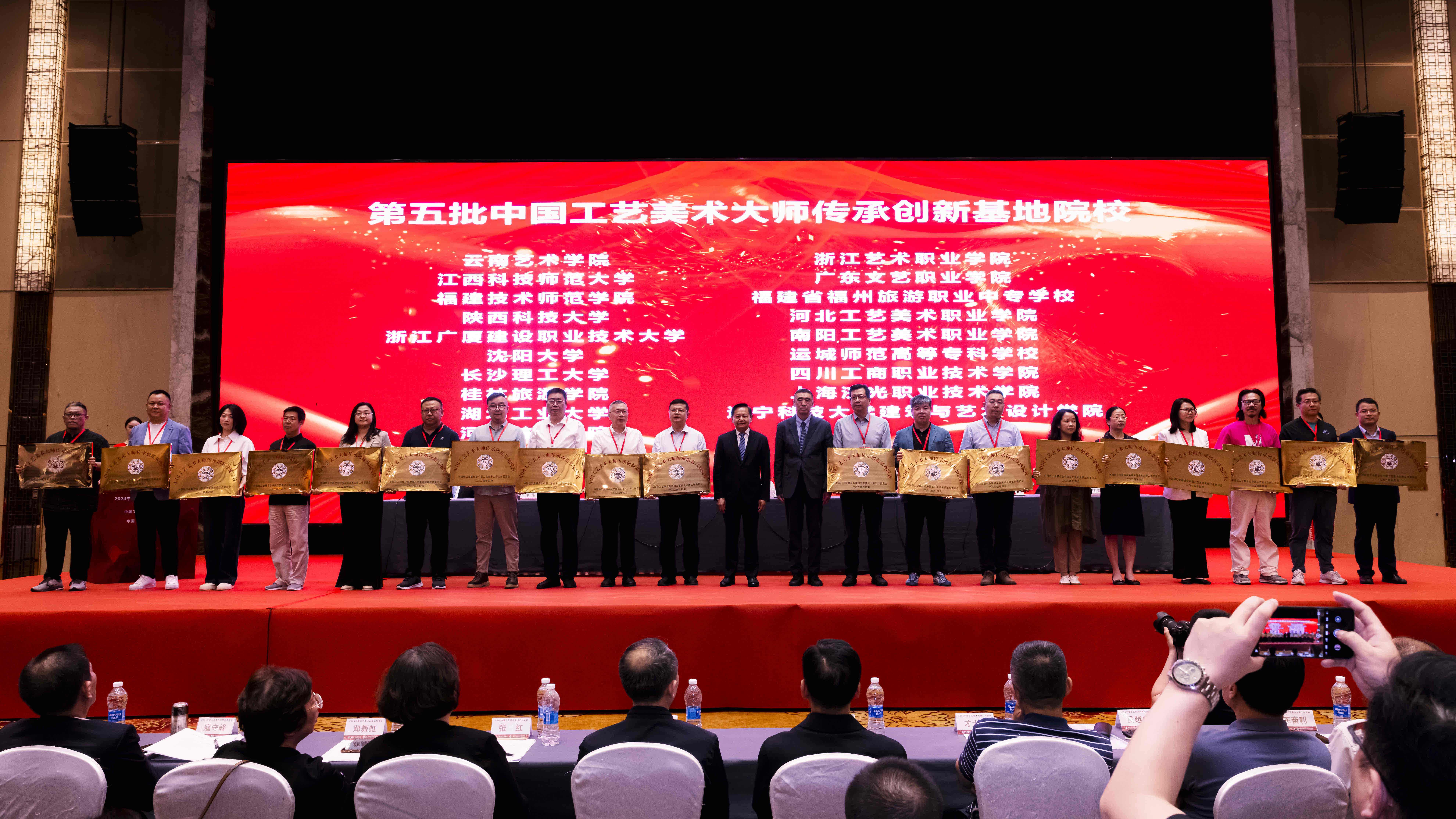 随后,会议举行了第五批中国工艺美术大师传承创新基地院校授牌仪式,南阳工艺美术职业学院荣幸地成为其中之一,胡楠校长代表南阳工艺美术职业学院接牌。这标志着学院在工艺美术教育领域取得了新的突破和成就。