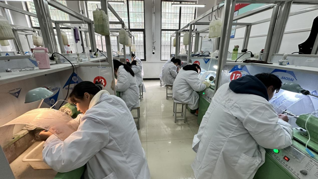 “大师工作室制”下的“五合一”人才培养模式,主要应用于非物质文化遗产等具有高度实践性民间传统工艺技艺的传承。通过建立校内实训基地,按照企业生产标准开展生产实训,让学生在真实场景下雕刻真实产品。每个车间聘请一名玉雕大师担任实习指导,同时配备一名校内骨干教师担任车间主任,实行“双导师”教学,学生接受学校教师与企业玉雕大师的共同培养,实现“教室与车间合一、教师与师傅合一、学生与学徒合一、作品与产品合一、育人与创收合一”。