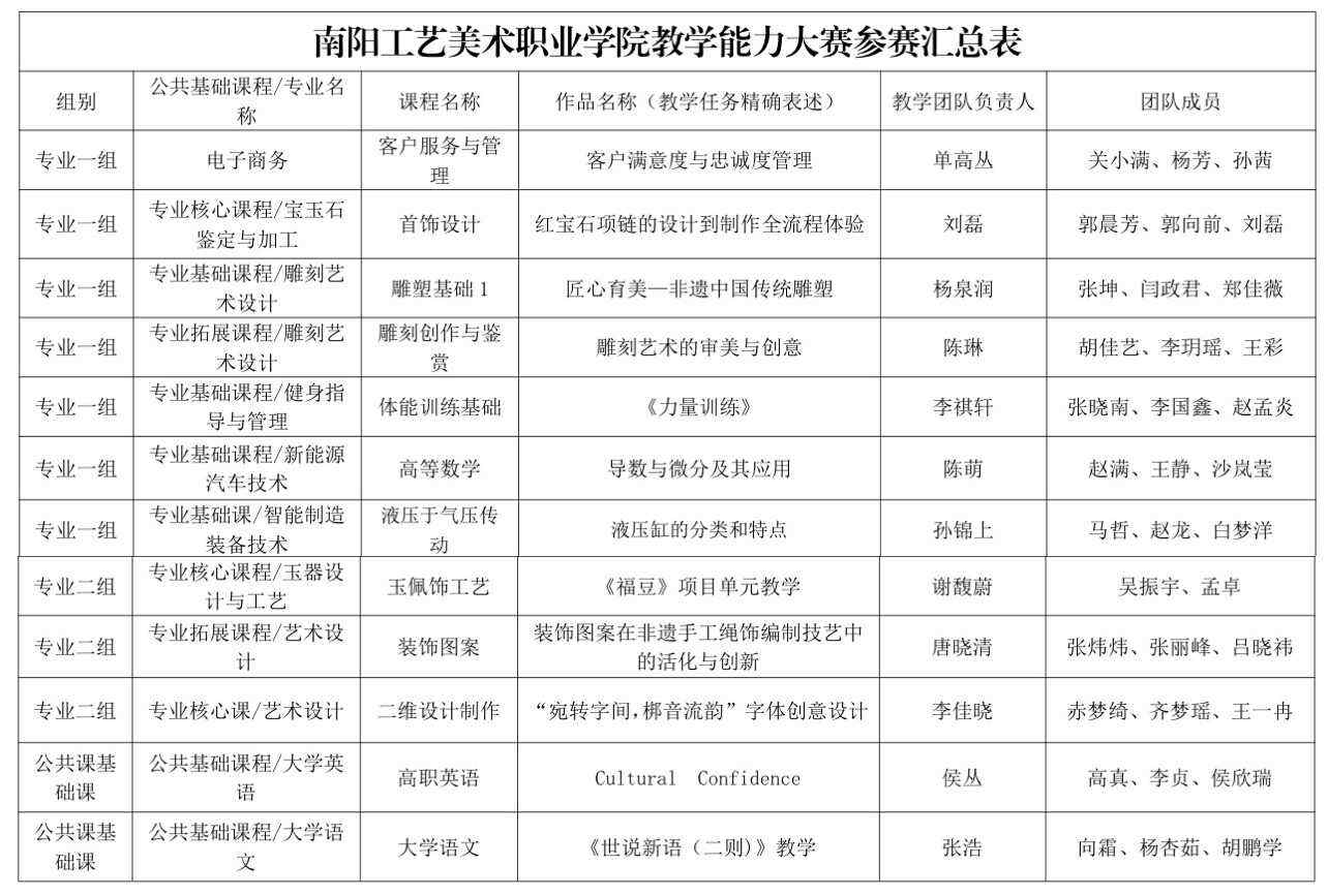 南阳工艺美术职业学院2025年教学能力大赛校赛参赛名单公示
