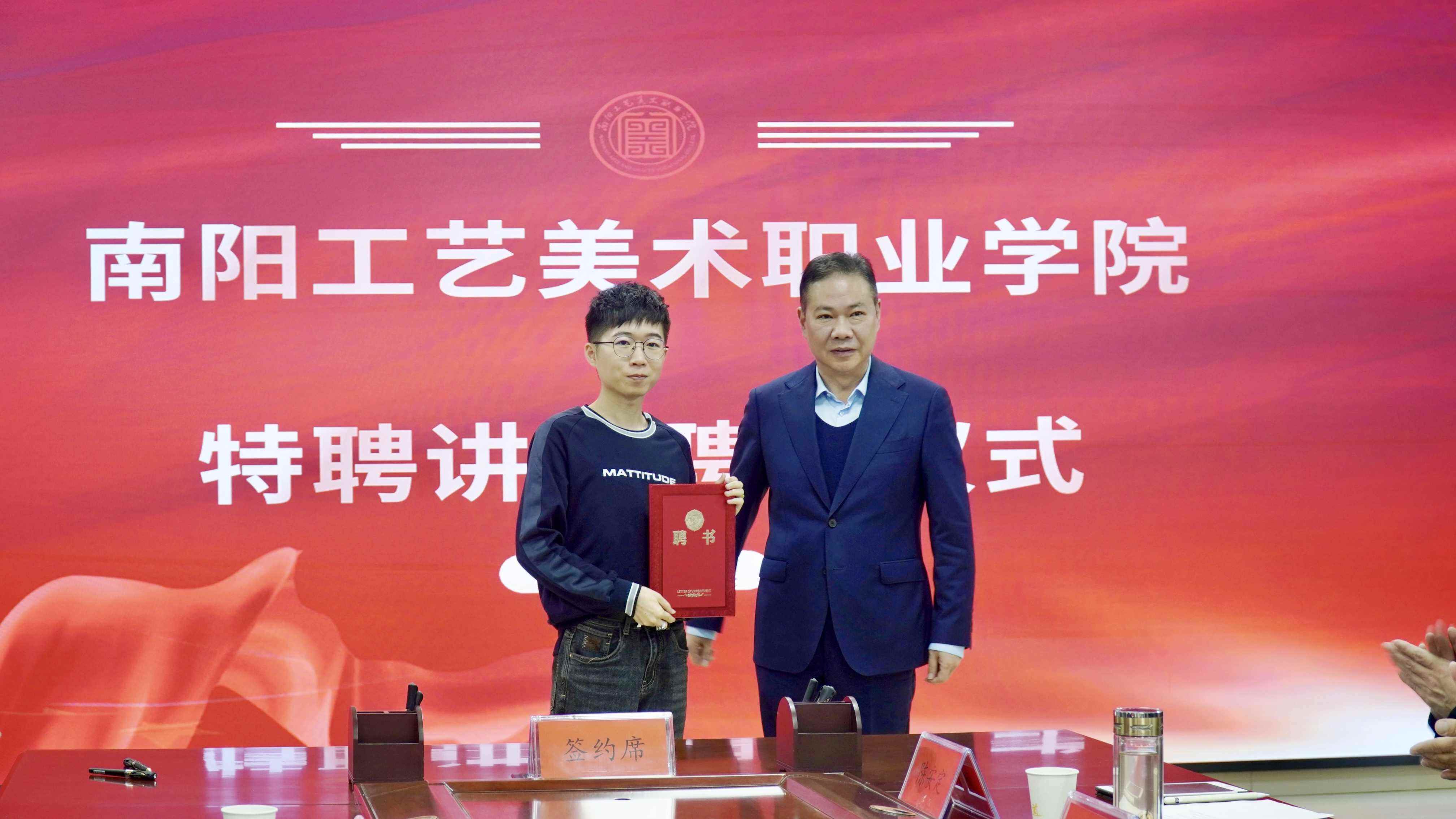 校党委书记赵毅辉为深圳市彩宝城珠宝产业链有限公司设计总监雷加木颁发特聘讲师聘书。雷加木作为国家高级珠宝设计师、湖南省玉石雕刻大师,将助力珠宝玉雕专业实践教学与行业前沿接轨。