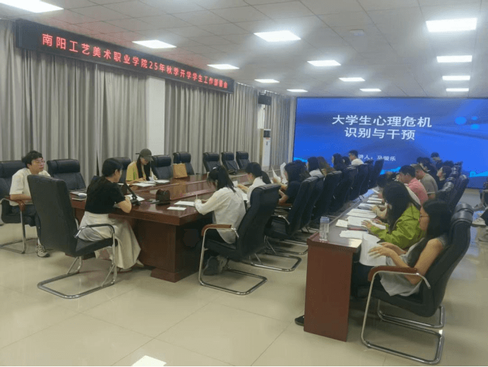 2025年9月5日,学生工作部在南阳工艺美术职业学院第一会议室召开秋季开学学生工作部署会暨首次辅导员培训大会。会议由学生工作部副部长王荣军和学生工作部副部长兼校团委书记唐天嘉共同主持。学生工作部与校团委全体工作人员、各教学院辅导员参加会议。会议对新生开学教育、辅导员职责与考核、宿舍隐患排查、新生军训安排、学生安全纪律、学生心理健康排查和思想动态跟踪等进行了全面部署。