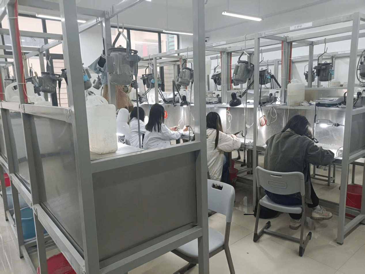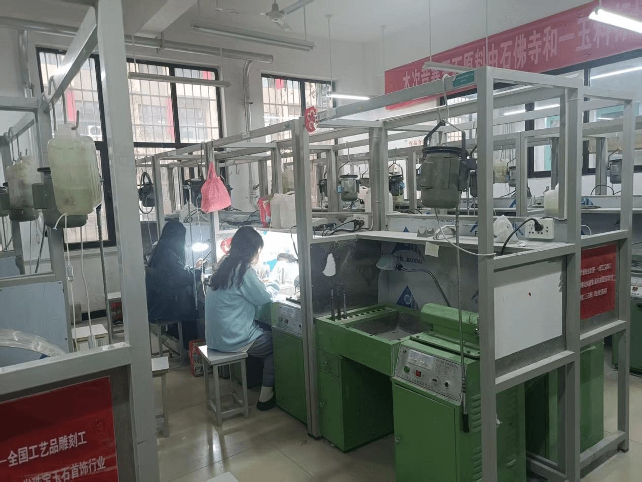 珠宝玉雕学院作为南阳工艺美术职业学院最具专业特色的学院,实训场所布局合理,覆盖玉石加工、虚拟仿真、鉴定检测、首饰制作全链条实践教学需求。现有玉石雕刻车间 5 间(每间配备专属实训工位)、1 间宝玉石鉴定与加工虚拟仿真实训室、2 间宝玉石鉴定实验室、另新增1 间首饰制作实训室、2间画室(筹备改造中)等专项空间,为学生提供沉浸式实操和学习环境。