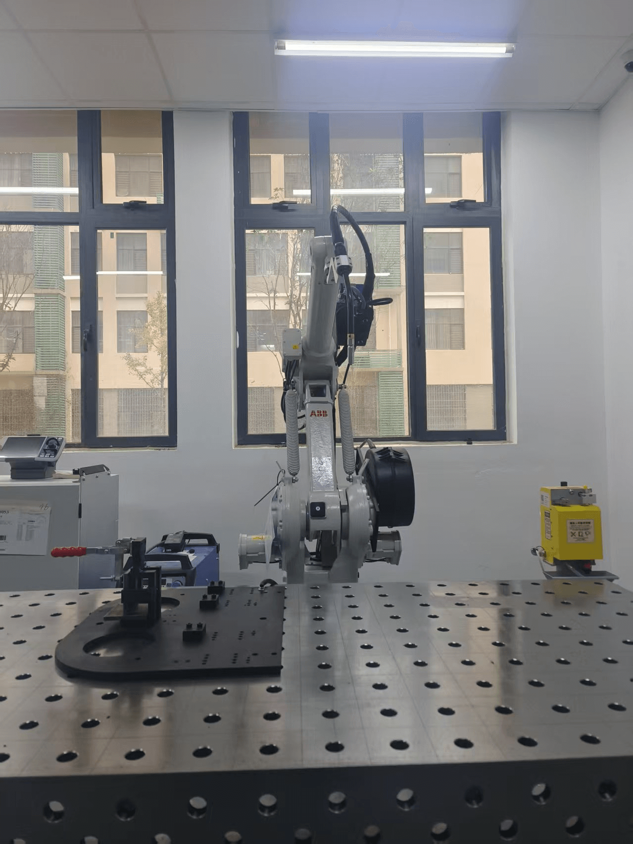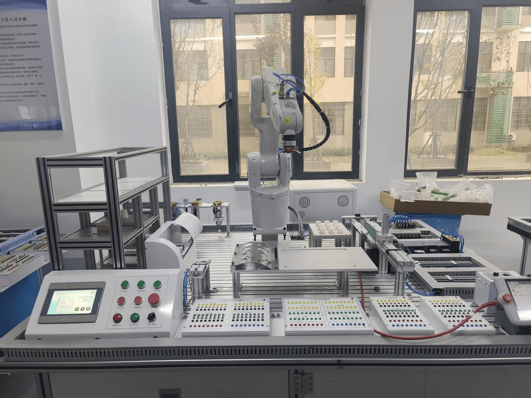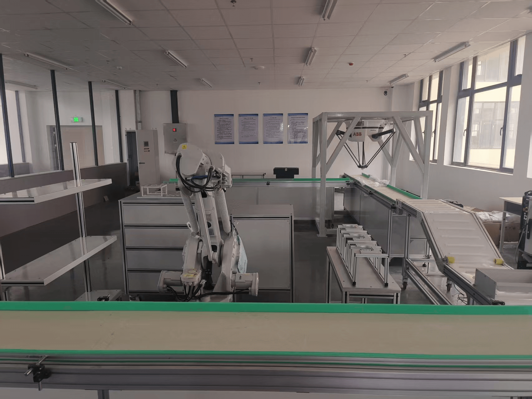 该实验室拥有工业机器人焊接实训系统、工业机器人分拣实训系统、工业机器人多功能装配工作站等系统平台。工业机器人焊接系统、工业机器人系统设备、工业机器人多功能装配工作站等系统平台用于为机器制造企业、机器维护企业、机器使用企业培养需求的高技能型人才。该装备技术覆盖了汽车制造、机械设备制造、自动化包装设备、自动化生产设备、激光、服装等产业领域。为我校相关专业提供实训支持。工业机器人多功能装配工作站可以工业机器人绘图、循迹、搬运 、平面码垛、皮带线、模拟打磨、快换 、PLC 编程、多功能装配平台、多功能仓库、人机界面设计、电气系统设计、机械装配、多种工具更换等实训功能。旨在培养学生的机器人编程能力和系统测试、操作维护能力,了解机器人在智能制造系统中的作用。