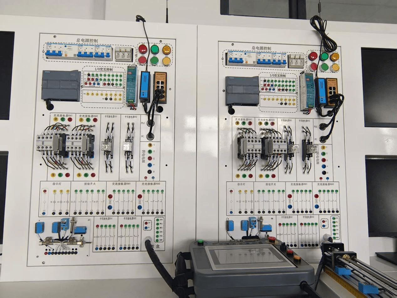 该实训室拥有工业数字化智能控制调试平台40余套。实验装置是实践动手能力、职业岗位适应能力和专业拓展能力的培养。本项目把课程实验、专业实习、工程实训、毕业设计等实践教学环节与先进PLC实训专业技能配训有机地结合起来,探索与企业合作培养创新人才的新模式。