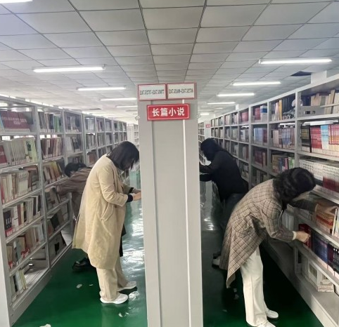 为尽快解决图书序列混乱问题,恢复整洁有序的借阅环境,图书馆的老师们主动放弃休息时间,充分利用学生借阅的空闲时段,全身心投入到繁重的图书整理与归架工作中。工作过程中,老师们严格依据《中国图书馆分类法》的分类细则,对每一本图书进行仔细核对、精准排序,再将其逐一归位到对应的书架上。他们穿梭在一排排书架之间,不放过任何一本错位的图书,用认真负责的态度和辛勤的汗水,生动诠释了 “责任与奉献” 的精神,为恢复图书馆的良好秩序付出了大量努力。
