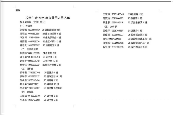 最后,经过各主席和各部门负责人的讨论和严格筛选,最终确定招新名单如下: