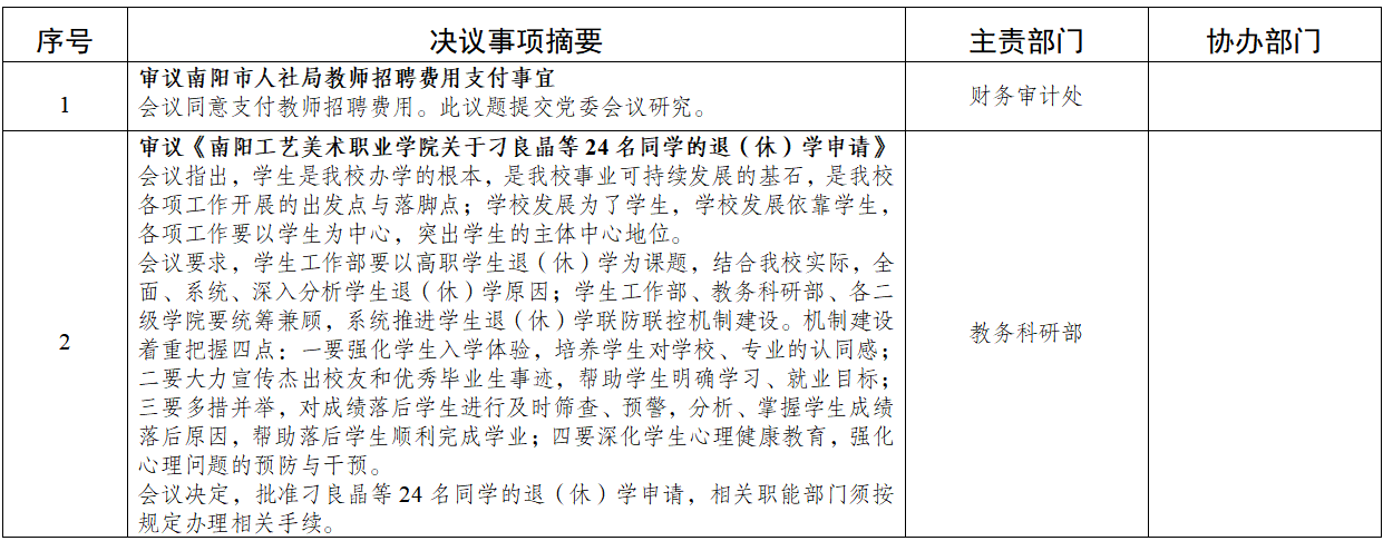 2024年第12次校长办公会议决议事项清单