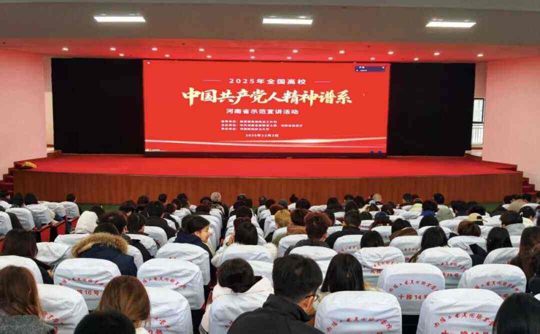 12月3日,由教育部思想政治工作司指导,中共河南省委教育工委、河南省教育厅主办的2025年全国高校“中国共产党人精神谱系”河南省集中示范宣讲活动举行。宣讲以线上+线下相结合、分主会场+分会场的形式开展,我校党群工作部组织师生代表在报告厅通过腾讯会议设分会场,校党委副书记郭学中,党委委员、副校长王道明,党委委员、党群工作部部长秦英翔、思政课教师、辅导员及学生代表370余人集中观看学习。