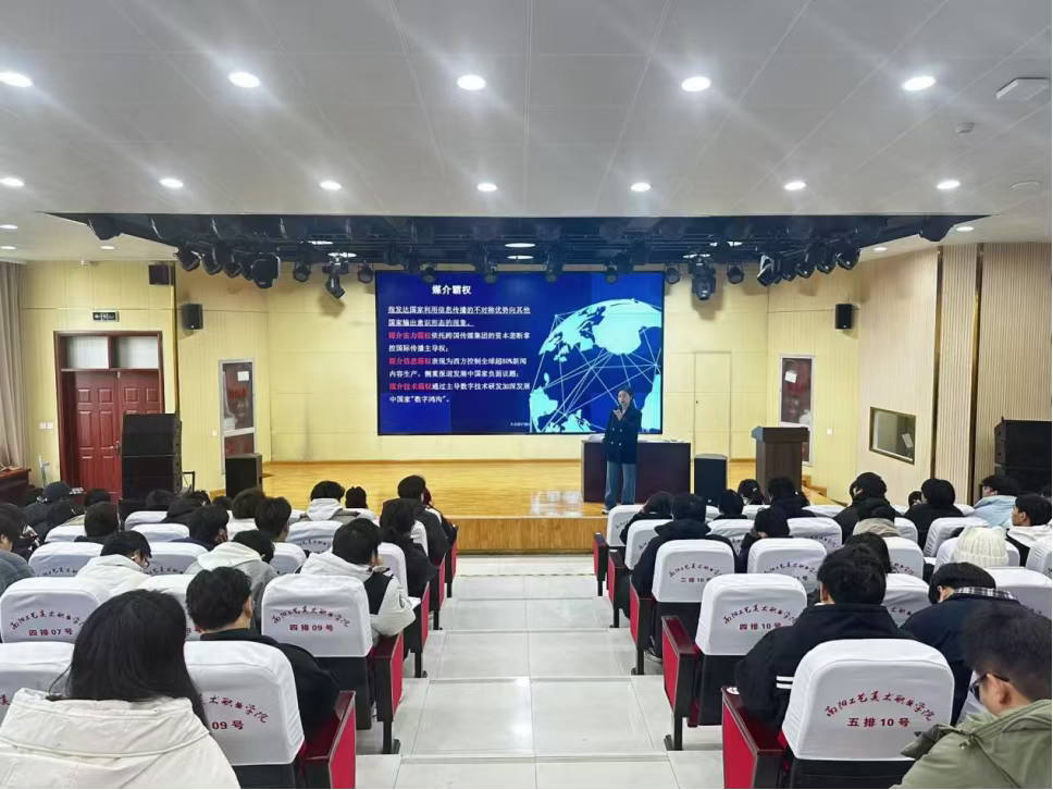 课堂上,李艳丹从“三边四社”的核心内涵展开阐释,与学生交流通讯社的由来与国际话语权纷争,进而讲到如何利用专业知识传递中国声音。她强调,艺术设计是传递中国声音的重要载体。新时代的艺术设计学子,要立足本土文化,将“以人为本”的理念融入创作实践,把中华优秀传统文化、中国发展成就、中国价值理念转化为兼具审美价值与思想内涵的设计作品,让世界通过设计读懂中国。