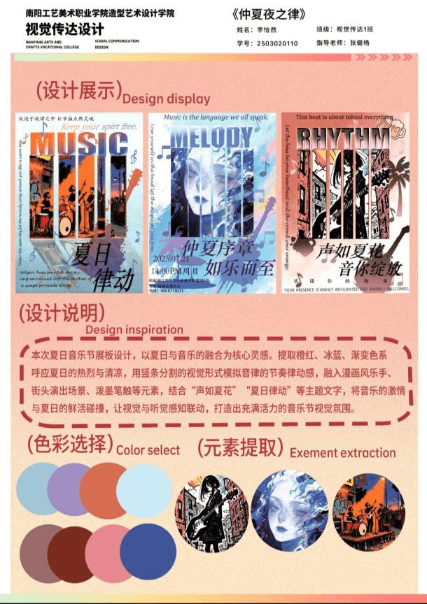 本次展览涵盖《中国画鉴赏与临摹》《数字图形》《设计构成》《造型基础》《色彩基础》《珠宝镶嵌》《白描Ⅰ》《雕塑基础Ⅰ》《精雕制图》等多门核心课程成果。结课展以线上线下相结合的方式展开,并陆续通过不同渠道进行了优秀作品展示。展览形式丰富,包括课程展板、实物作品及主题海报等,全面呈现学生在一学期中的思考、实践与成长。