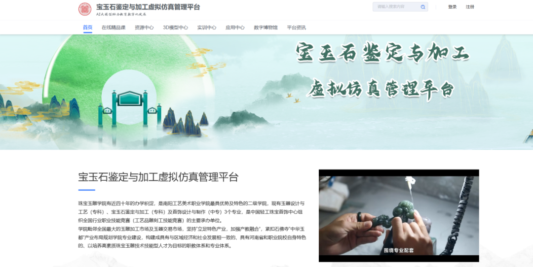 本次案例征集活动由教育部教育技术与资源发展中心(中央电化教育馆)主办,旨在落实国家教育数字化战略行动,推动虚拟仿真技术与教育教学深度融合,搭建优质教学成果交流平台。接到通知后,学院迅速组建以院长陈安定、教学负责人时晨、实习实训中心主任李闫骥为主的核心团队,聚焦我院玉器设计与工艺、宝玉石鉴定与加工等专业“高投入、难再现”的实训痛点,系统梳理平台建设与应用成果。该平台(链接:https://zyk.lxltzyk.com/lxproject/e1002e8bde914f23b5d2d6740c06b91c/homeType/520)以南阳深厚玉文化为根基,融合VR智能交互技术,构建了从玉原石开采、宝玉石识别、玉器雕刻、宝玉石镶嵌等全流程虚拟实训场景,实现“虚实结合”的沉浸式教学,有效破解了传统实训中原料损耗大、工艺观摩难等问题,将会为学生提供安全可重复的实训环境。