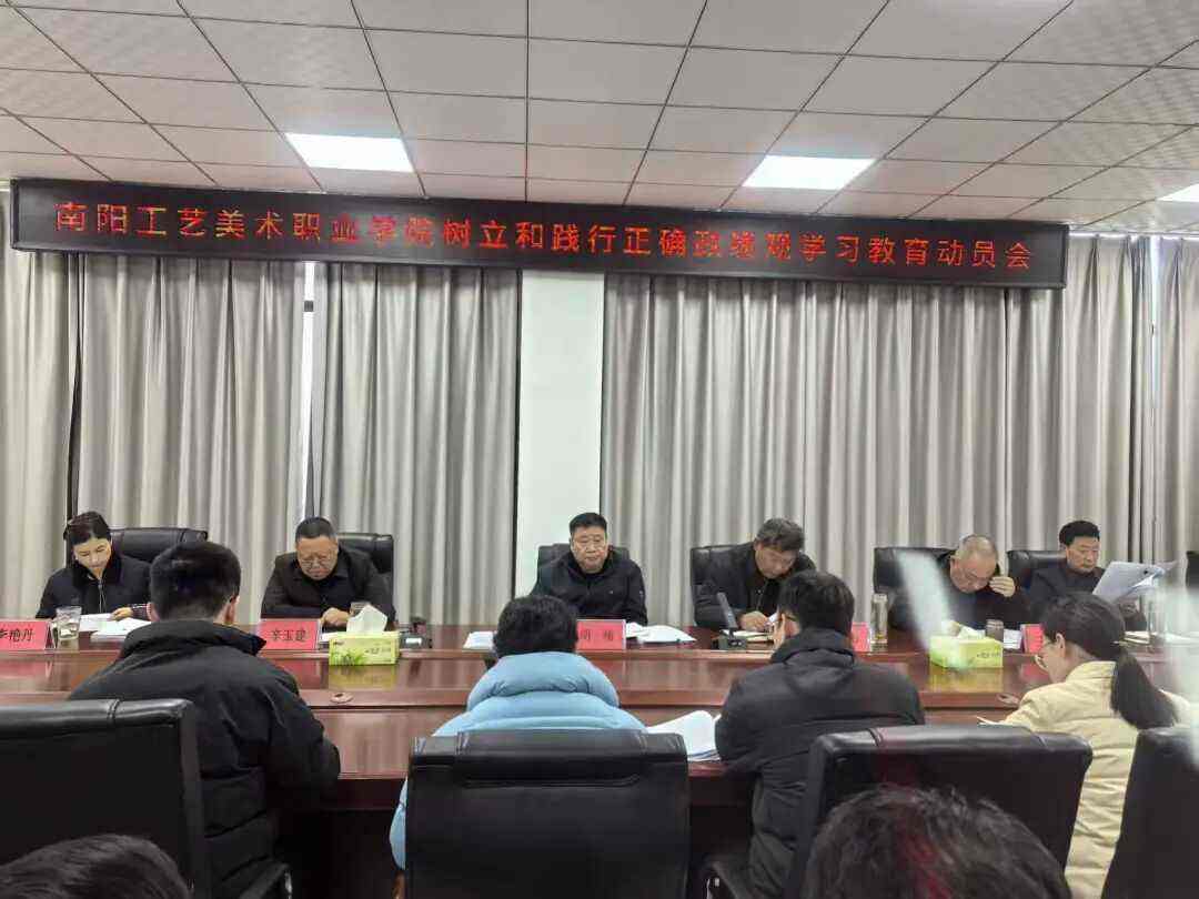 3月4日,南阳工艺美术职业学院党委在综合楼第一会议室召开树立和践行正确政绩观学习教育动员会议,研究部署全校树立和践行正确政绩观学习教育工作。党委副书记、校长胡楠主持会议,校党委领导班子全体成员出席,各职能部门、二级学院主要负责人参会。