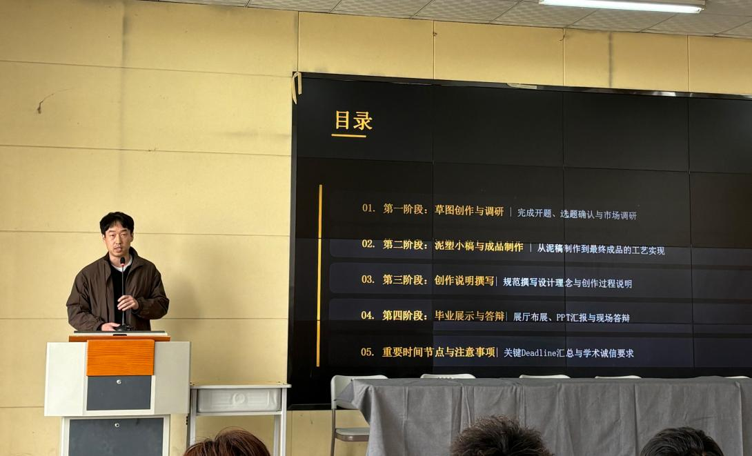 专业负责人张主任细致梳理了毕业创作的时间节点与阶段性任务,要求同学们严守进度,保质保量完成创作,确保毕业作品展的顺利呈现。