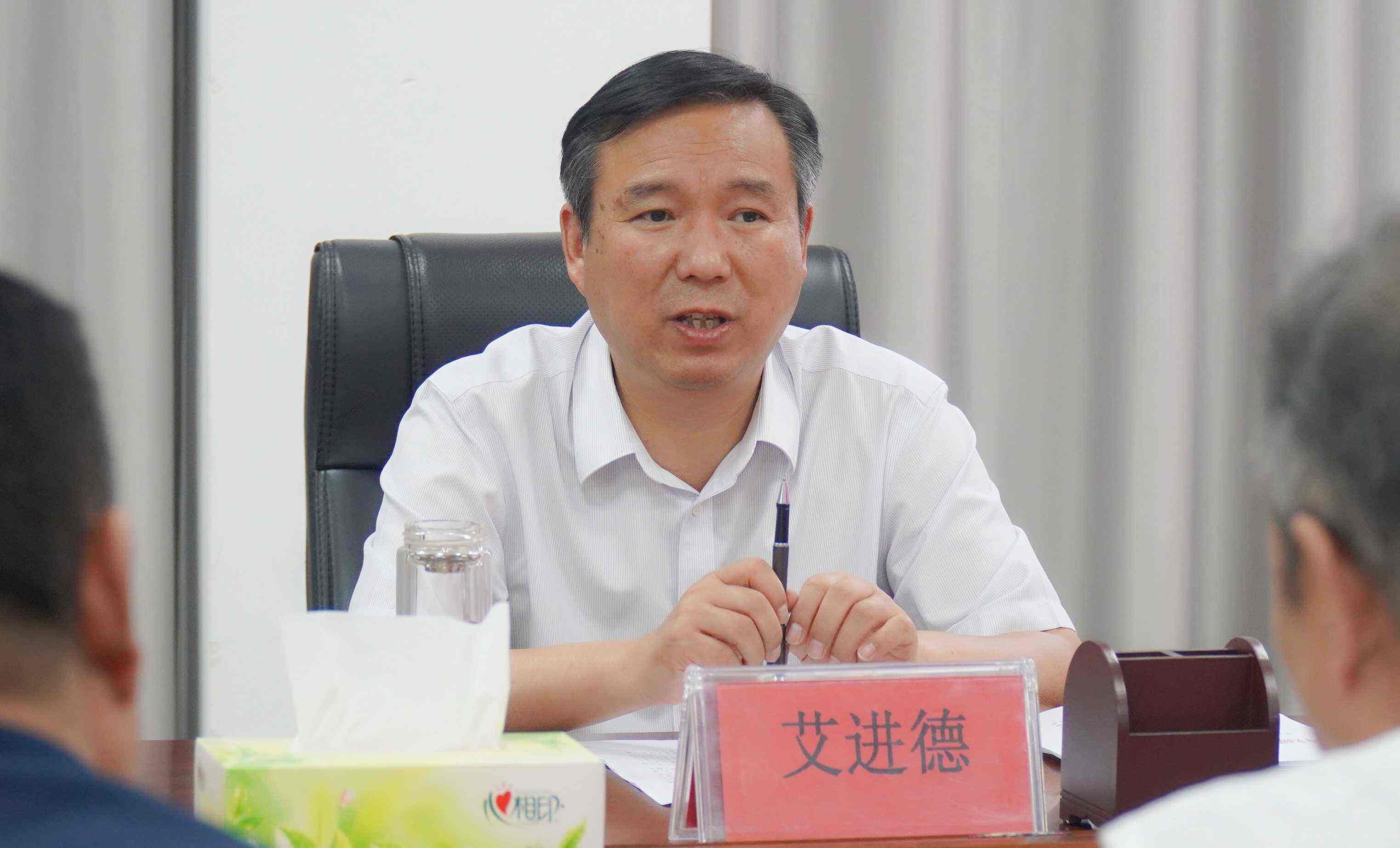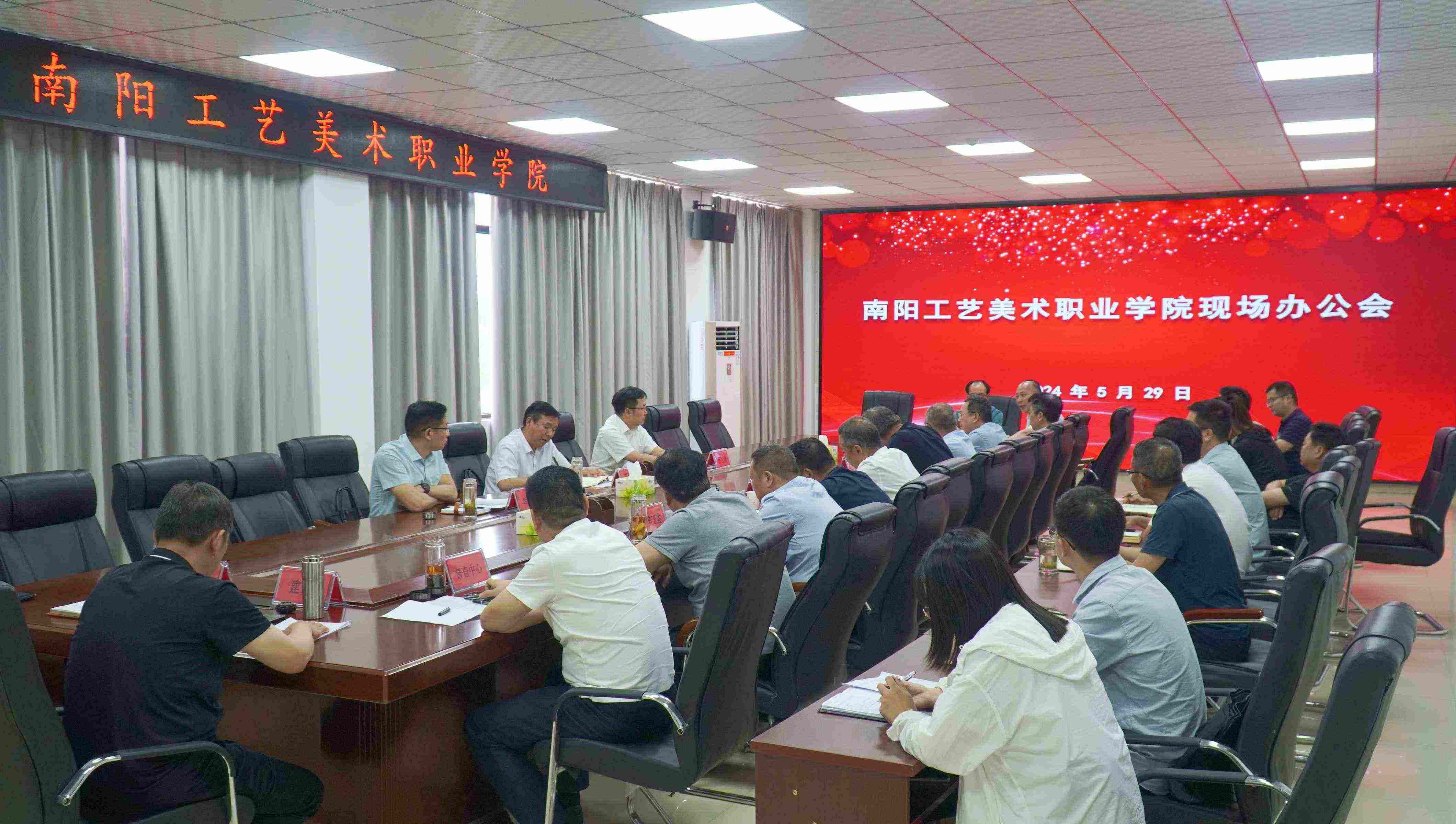 近日,镇平县委书记艾进德与县领导薛江峰、韩岭、黄玉一行到南阳工艺美术职业学院现场办公。校党委书记赵毅辉、校长胡楠等校领导参加了办公会。