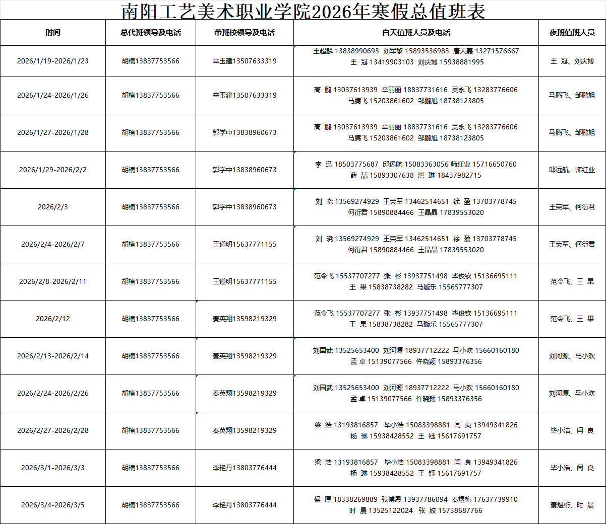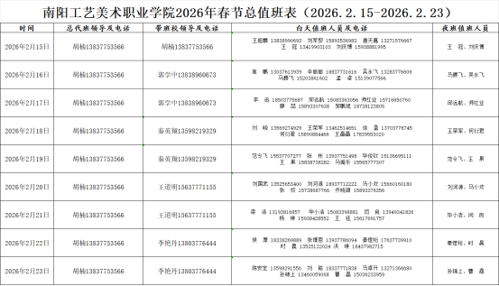 4.各职能部门、各教学院部须妥善做好部门假期值班工作安排,并将部门值班表电子版抄送行政办公室邮箱(nyaacvc_office@163.com)。